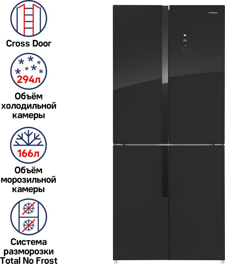 MAUNFELD Холодильник трехкамерный MFF181NFB Side by Side, инверторный черный