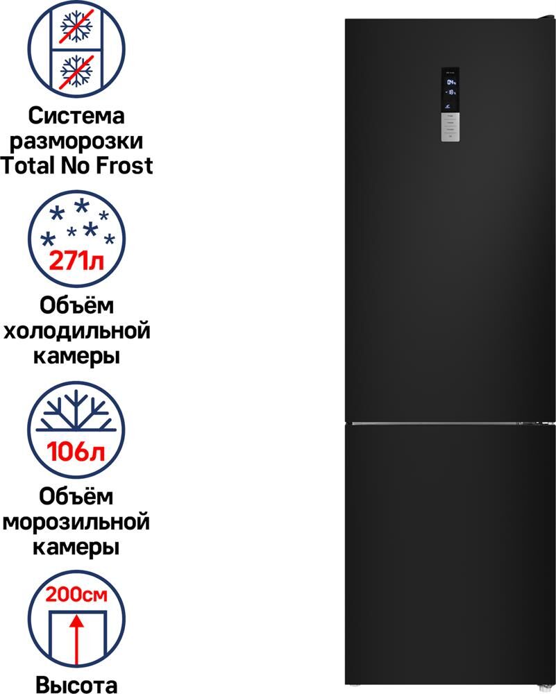 MAUNFELD Холодильник двухкамерный MFF200NFBE Total No Frost, черный