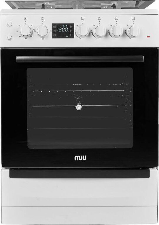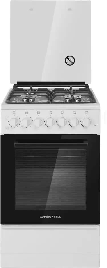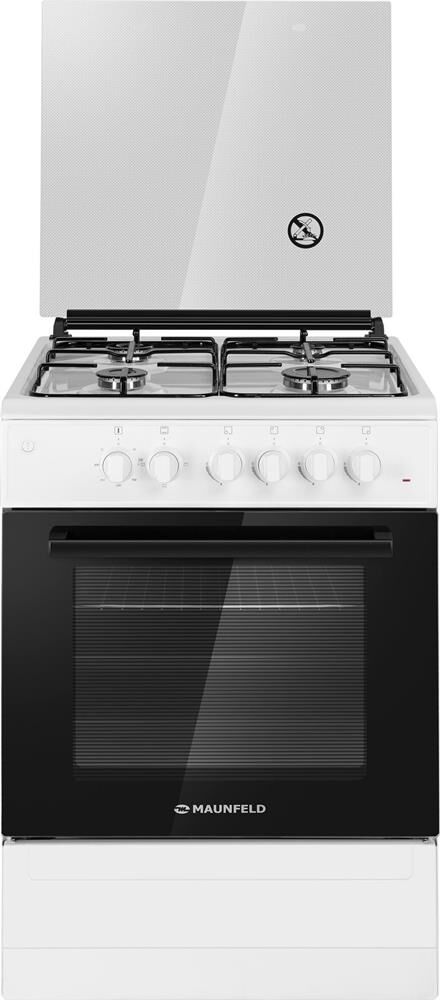MAUNFELD Газовая плита MGC60EEW03, электрическая духовка, стеклянная крышка, сталь, белый [ка-000184