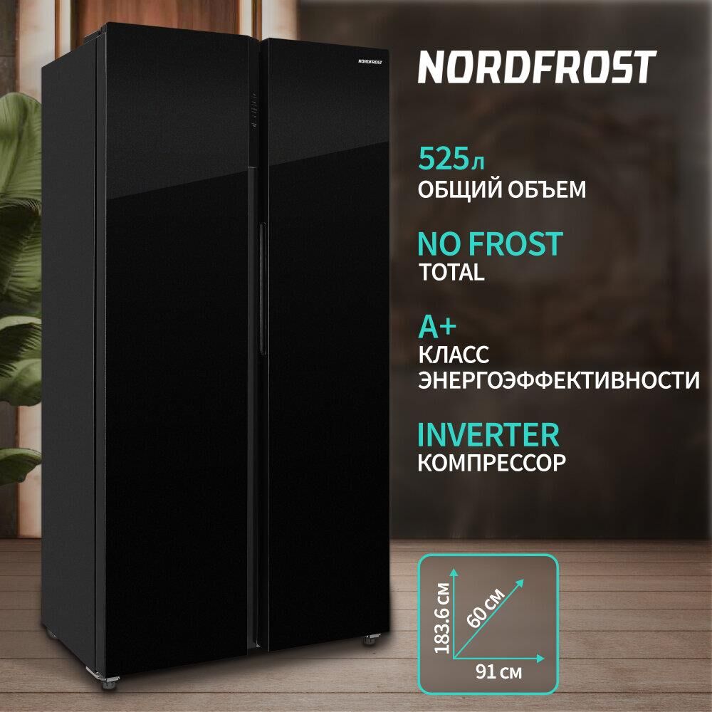 NORDFROST RFS 525DX NFGB inverter Холодильник черное стекло