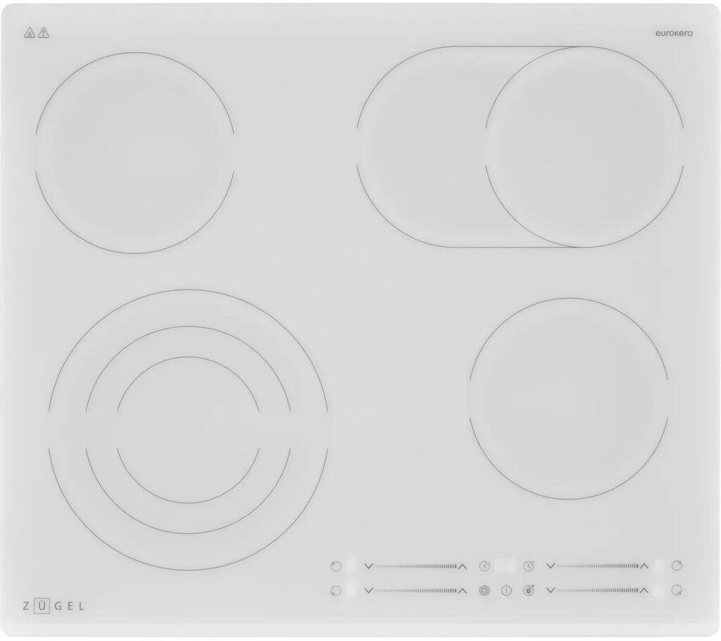 ZUGEL Электрическая варочная поверхность ZEH603W, конфорок: 4 шт., стеклокерамика, независимая, белы