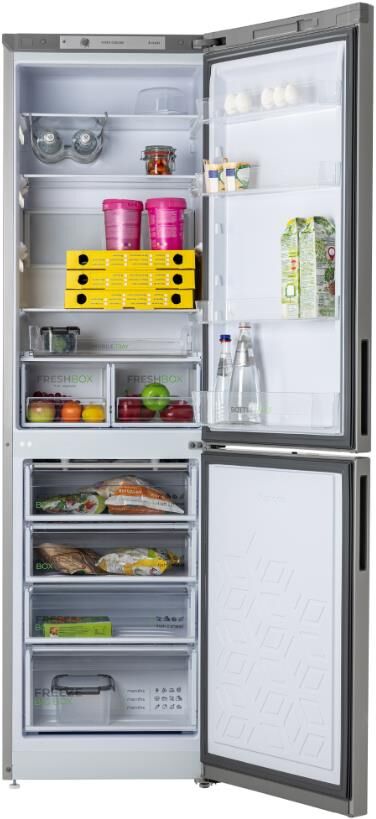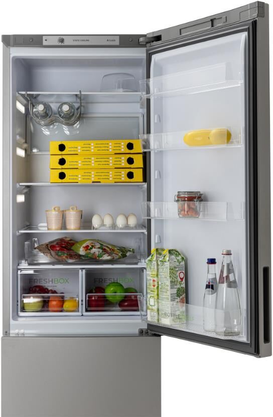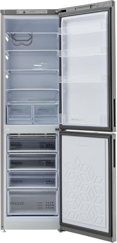 Габариты (ВхШхГ) 207х60х62,5см; Цвет: Металлик; Общий объем: 380л; Компрессор: 1; Количество камер: 2; Объем холодильной камеры, л: 245; Объем морозильной камеры, л: 135; Расположение морозильной камеры: Нижнее; Управление: механическое; Размораживание морозильной камеры: Ручное; Мощность замораживания: 7 кг/сутки; Класс энергоэффективности: A; Минимальная температура в морозильной камере: -18 °C; Суточный расход электроэнергии, при температуре окружающего воздуха 24°C: 0,95 кВтч; Максимальный уровень шума 41 дБ