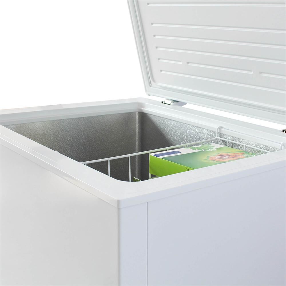 Морозильный ларь с глухой крышкой. С доп. функцией холодильника. Габаритные размеры, мм (ВхШхГ) 850x632x550. Внутренний объем, л 142. Режим охлаждения, °C +10…0. Режим заморозки, °C -12…-24. Тип управления механический. Количество корзин, шт 1.