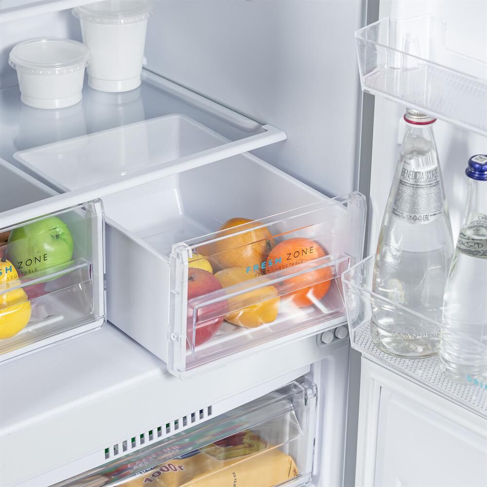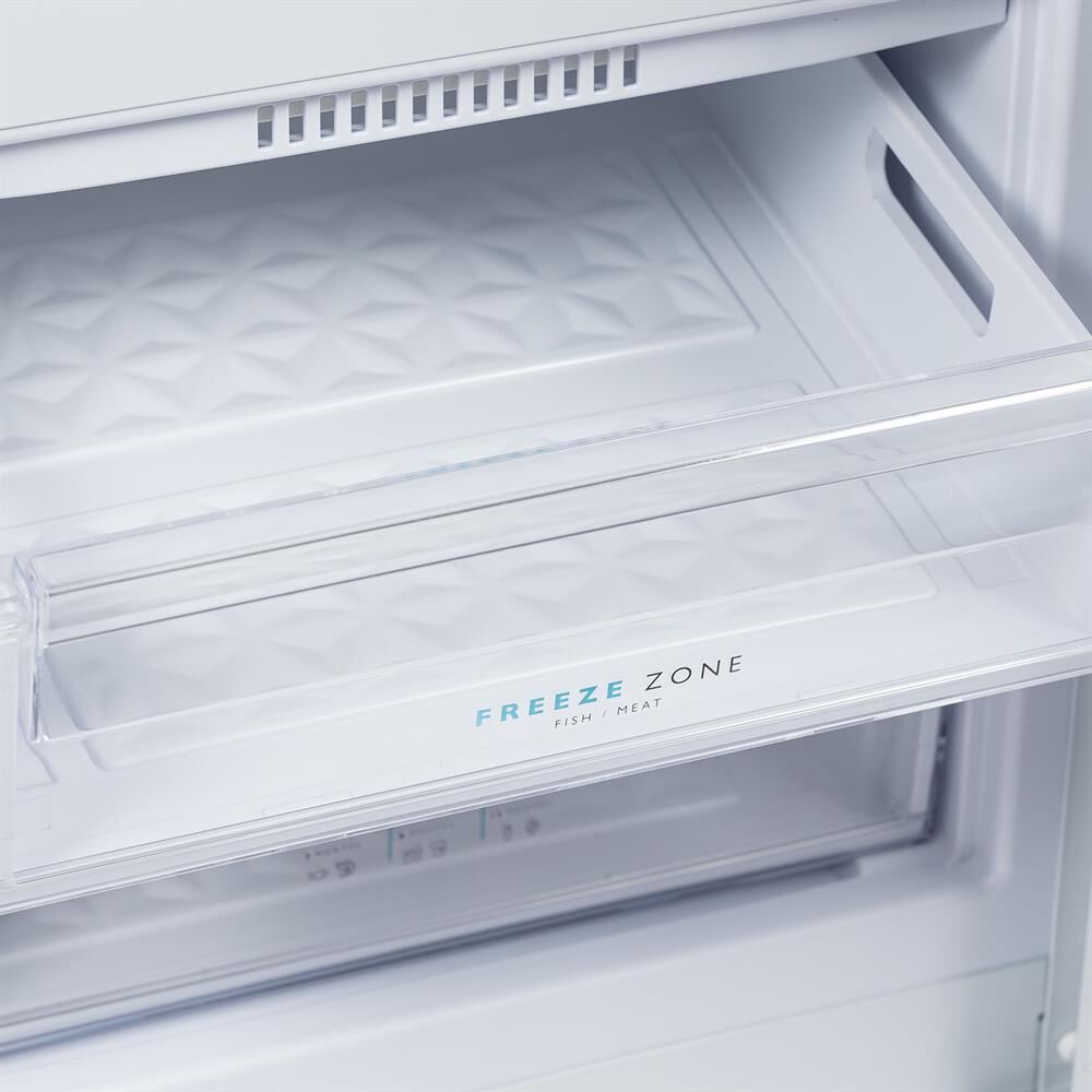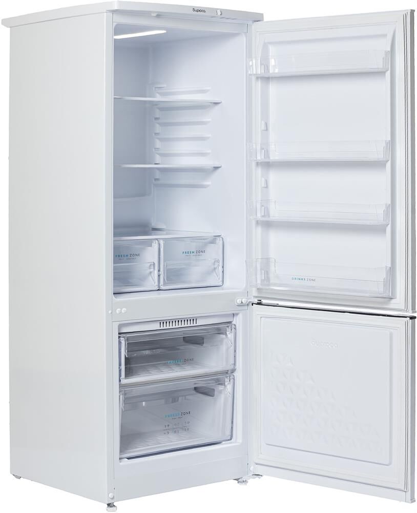 Двухкамерный холодильник с нижней морозильной камерой; Цвет: Белый; LED освещение; Автоматическое оттаивание; Механическое управление; Габариты: 145x58x62см; Объем: 240/180/60л