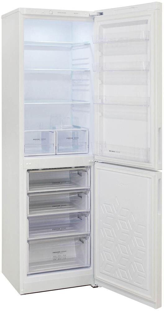 Двухкамерный холодильник с нижней морозильной камерой. Цвет белый. Общий объем 380 л. Объем холодильной/морозильной камеры 245/135л. Класс энергоэффективности А. Освещение LED. Управление механическое. Климатический класс N. Максимальный уровень шума 41дБ. Габариты В/Ш/Г 207/60/62,5 см. Количество полок в холодильном отделении 4. Материал полок стекло/пластик. Размораживание холодильной/ морозильной камеры автоматическое/ручное. Автономное сохранение холода 17ч. Мощность замораживания, 7 кг/сутки. Режим "Быстрая заморозка".