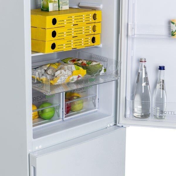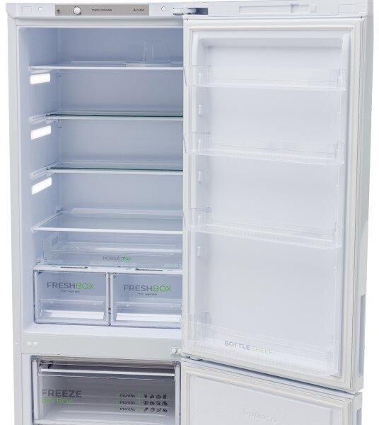 Двухкамерный холодильник с нижней морозильной камерой; Габариты В/Ш/Г: 180х60х62,5см; Цвет: белый; Автоматическое оттаивание; Две складные полки; Горизонтальное LED освещение; Регулировка влажности Humidity control; Выдвижной лоток; Механическое управление; Объем: 330/245/85л; Класс энергоэффективности: A; Вес: 61кг.