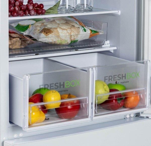 Габариты: 175х60х62,5см; Объем 310/210/100л; Цвет: Белый; Автоматическое оттаивание; Складная полка; Горизонтальное LED освещение; Регулировка влажности Humidity control; Выдвижной лоток; Механическое управление; Класс энергоэффективности: A; Климатический класс: N; Возможность перевешивания двери; Количество ящиков в морозильном отделении: 3; Размораживание морозильной камеры: ручное; Автономное сохранение холода, ч: 17; Мощность замораживания, кг/сутки: 5; Минимальная температура в морозильной камере, °C: -18