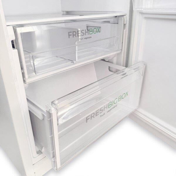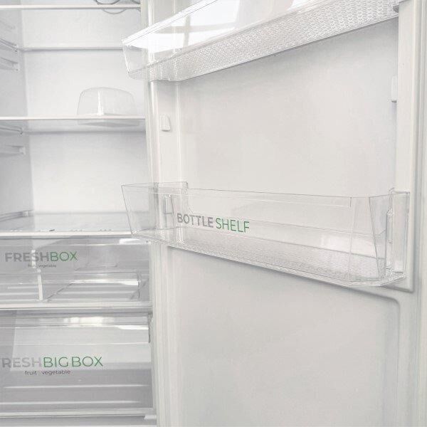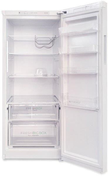 Однокамерный холодильник без морозильного отделения • цвет Белый • автоматическое оттаивание • боковое LED освещение • регулировка влажности Humidity control • подвесная полка для бутылок • разделитель в ящике для овощей и фруктов • механическое управление • габариты 145x60x62,5см • объем 295л