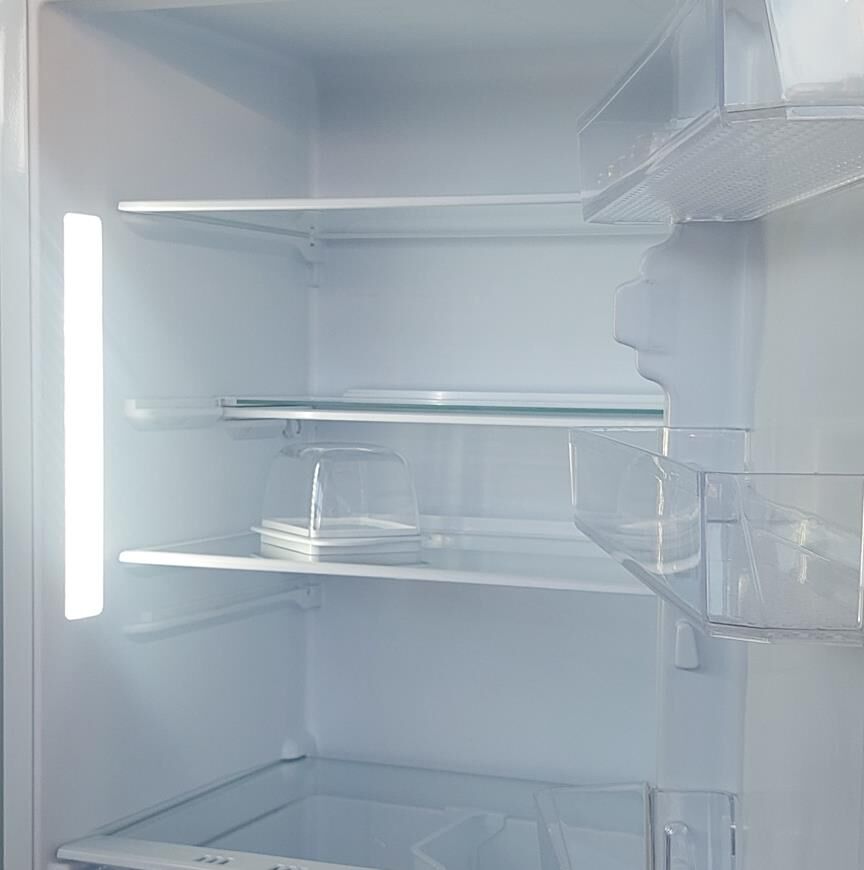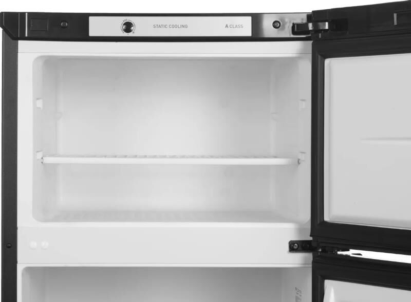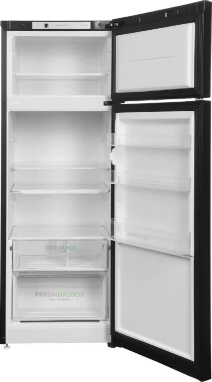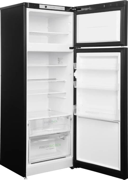 Размеры(ШхВхГ): 60 х 165 х 62.5 см; Цвет: Черная нержавеющая сталь; Механическое управление; Автоматическое оттаивание; Складная полка; Боковое LED освещение; Общий объем, л: 300; Объем холодильной камеры, л: 240; Объем морозильной камеры, л: 60; Количество камер: 2; Расположение морозильной камеры: Верхнее; Количество компрессоров: 1; Суточный расход электроэнергии, при температуре окружающего воздуха 24°C, кВтч: 0.9; Климатический класс: N; Возможность перевешивания двери; Класс энергоэффективности: A; Максимальный уровень шума, дБ: 39; Размораживание морозильной камеры: ручное; Автономное сохранение холода, ч: 12; Мощность замораживания, кг/сутки: 3; Минимальная температура в морозильной камере, °C: -18; Количество полок в холодильном отделении: 4; Температура в отделении для хранения свежих пищевых продуктов: От 0 до 8 °C; Материал полок: стекло/пластик; Оттаивание холодильной камеры: автоматическое; Количество ящиков в холодильном отделении: 2