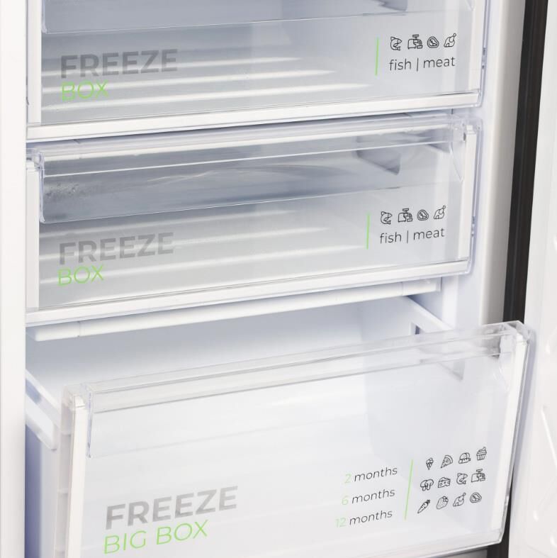 Двухкамерный холодильник с нижней морозильной камерой; Габариты ВхШхГ, см: 175х60х62,5; Количество камер: 2; Расположение морозильной камеры: нижнее; Управление: механическое; Автономное сохранение холода: 17 ч; Общий объем: 310 л; Общий полезный объем: 260 л; Полезный объем холодильной камеры: 190 л; Количество ящиков в холодильном отделении: 2; Количество полок в холодильном отделении: 4; Оттаивание холодильной камеры: автоматическое; Объем морозильной камеры: 100 л; Минимальная температура в морозильной камере: -18 ° C; Материал полок: стекло/пластик; Количество ящиков в морозильном отделении: 3; Температура в отделении для хранения свежих пищевых продуктов: от 0 до 8 °C; Мощность замораживания: 5 кг/сутки; Размораживание морозильной камеры: ручное; Климатический класс: N; Максимальный уровень шума: 41 дБ; Количество компрессоров: 1; Освещение: LED; Класс энергоэффективности: A; Комплектация: подставка для яиц, масленка, выдвижной лоток, складная полка