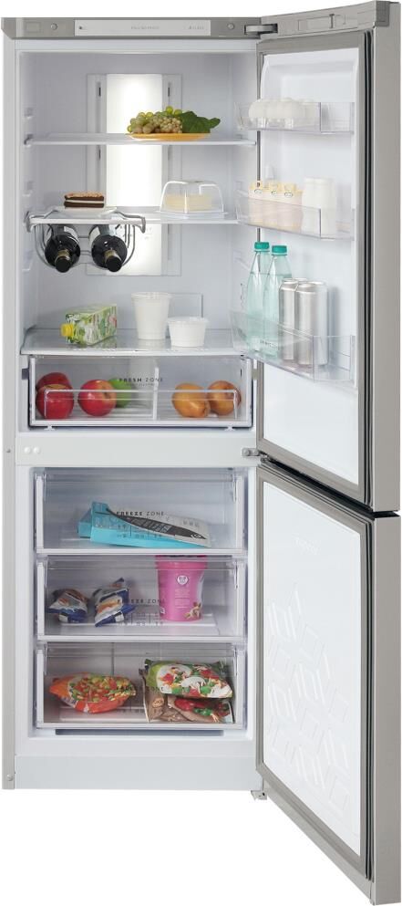 Габариты 175х60х62,5см; Система Full No Frost; Объем: 310/210/100л; Цвет: Cеребристый металлопласт; LED дисплей на двери; Система охлаждения Multi Air Flow; Регулировка влажности Humidity control; Единая зона для овощей и фруктов Fresh Zone с разделителем; Класс энергоэффективности: A; Суточный расход электроэнергии, при температуре окружающего воздуха 24°C, кВтч: 0.97; Климатический класс: N, ST; Автономное сохранение холода, ч: 17