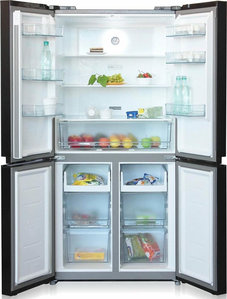(ВхШхГ)177,5х83,3х65,5см.Цвет черное стекло.Полезный объем 456л.Объем х/о 303л.,объем м/о 153л.Тип управления LED-дисплей.Количество компрессоров 1 Корректированный уровень звуковой мощности (не более), дБа 42.Хладагент R-600a.Номинальная потребляемая мощность, Вт170.Потребление энергии при температуре окружающего воздуха 25°C (не более), кВт*ч/24ч 1.Класс энергетической эффективности A.Температура в отделении для хранения свежих пищевых продуктов, °C от 2 до 8.Температура в морозильном отделении (не более), °C -18.Встроенная ручка.Система Full No Frost.Климатический класс, температура окружающего воздуха ST,SN,N,T +16…+43°C.Освещение LED.Система суперохлаждение.Система суперзаморозка.Защита от детей.