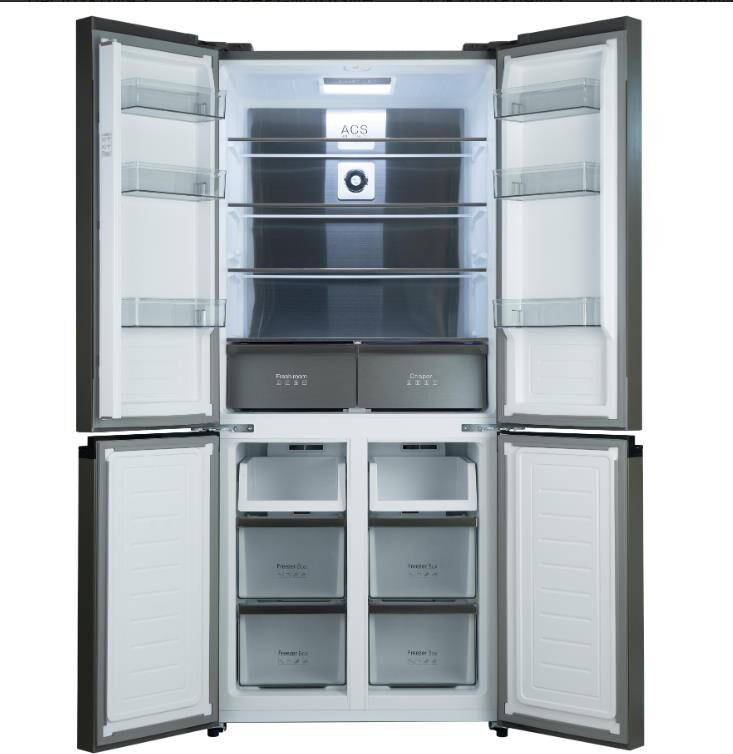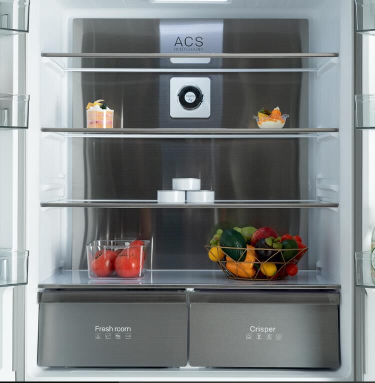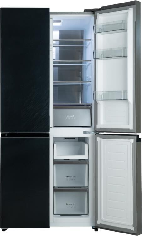 Многокамерный холодильник с текстурированным черным стеклом; Система Full No Frost; Dual Inverter: инверторные компрессор и вентилятор; Класс энергоэффективности: А++; Система распределения воздушных потоков MultiFlow; Технология охлаждения Metal Cooling; Деодорирующий фильтр Nano Ag+; Габариты: 189×83,3×66см; Объем: 496/334/162л