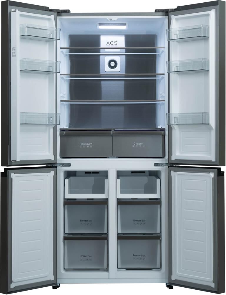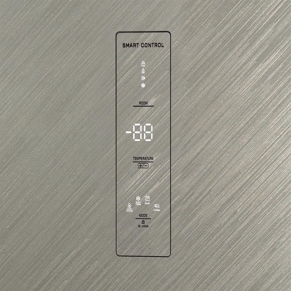 Многокамерный холодильник с текстурированным бежевым стеклом; Система Full No Frost; Dual Inverter: инверторные компрессор и вентилятор; Класс энергоэффективности А++; Система распределения воздушных потоков MultiFlow; Технология охлаждения Metal Cooling; Деодорирующий фильтр Nano Ag+; Габариты: 189×83,3×66см; Объем: 496/334/162л