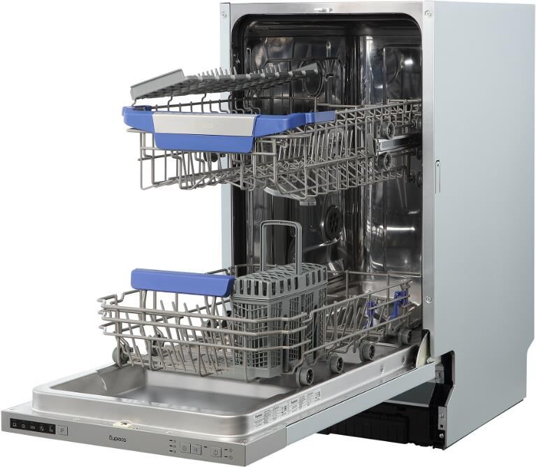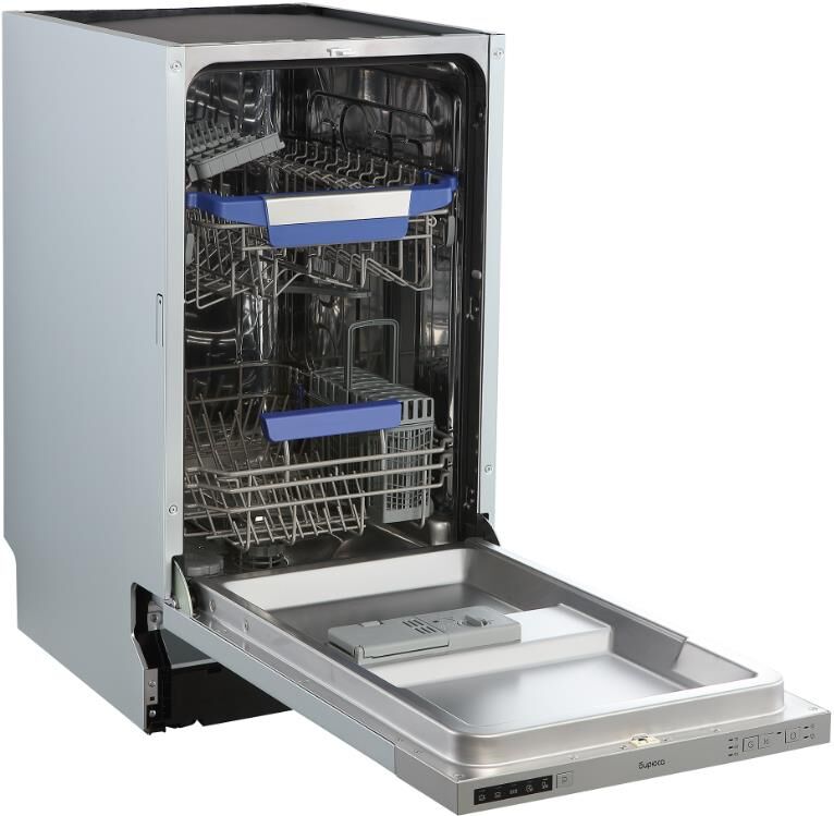 Габариты ШхВхГ, см: 44,8х81,5х55; Тип установки: Встраиваемая; Тип сушки: Конденсационная; Максимальная температура: 65 ℃; Минимальная температура: 45 ℃; Количество программ: 5; Количество комплектов: 9; Основные программы: ЭКО, 90 минут, Быстрая, Интенсивная, Обычная; Таймер отсрочки запуска; Расход воды за цикл: 9 л; Уровень шума при работе: 49 дБ; Энергопотребление за цикл: 201 кВт; Дополнительные функции: Луч на полу, 1/2 загрузки, Отложенный старт, AquaStop
