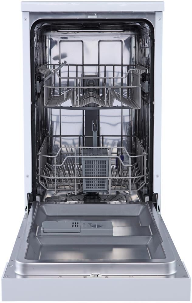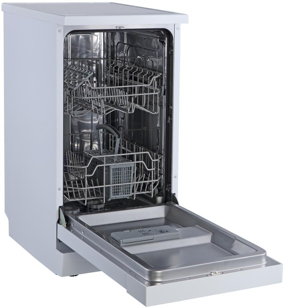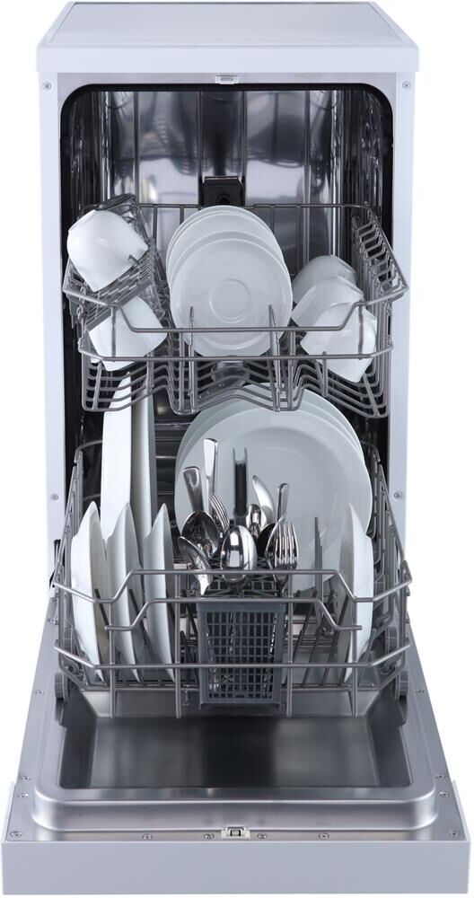 Отдельностоящая посудомоечная машина расcчитана на 9 комплектов; Габариты ВхШхГ: 84,5×44,8×60см; Отсрочка запуска: 3/6/9ч; LED-индикация; Блокировка от детей; Класс: А+; Режим 1/2 загрузки; 6 программ: интенсив, ECO, обычная, стекло, 90 минут, быстрая; Регулируемая по высоте корзина; Расход воды за цикл: 10л; Энергопотребление за цикл: 0,7 кВт*ч