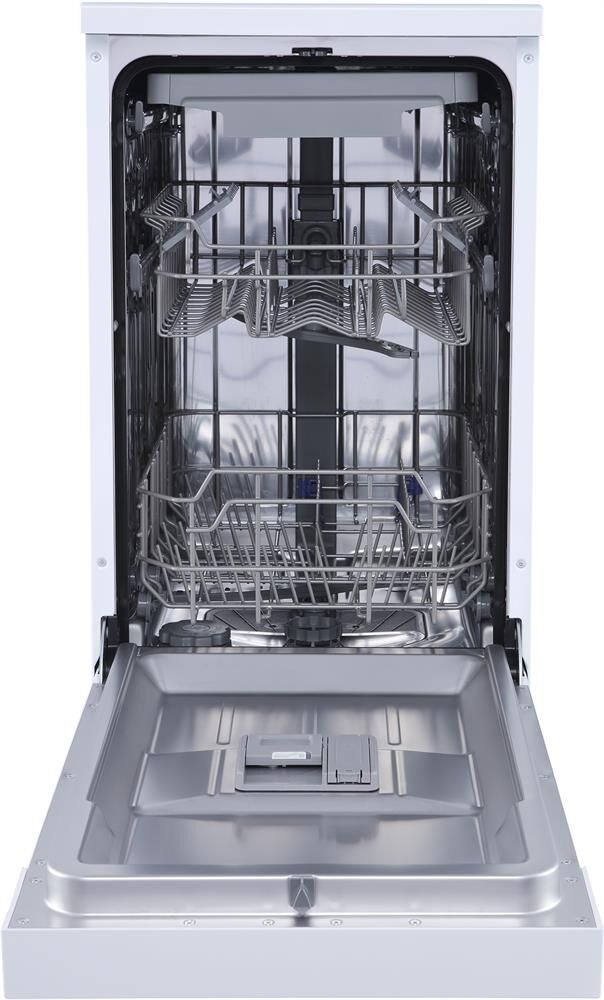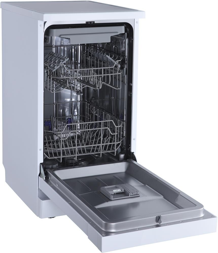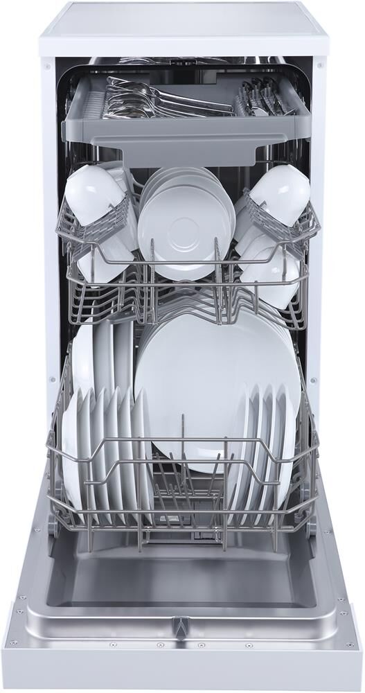Отдельностоящая посудомоечная машина; Габариты: 84,5×44,8×60см; 10 комплектов посуды; Количество корзин: 2 для посуды, 1 для столовых приборов; Класс: А++; LED-дисплей; Таймер отсрочки запуска: 1-24 ч; Количество программ 6: интенсивная, обычная, эко, быстрая, стекло, 90 минут; Тип сушки: Конденсационная; Расход воды за цикл: 9л.; Режим 1/2 загрузки; Экстра сушка; Максимальный уровень шума: 49 дБ