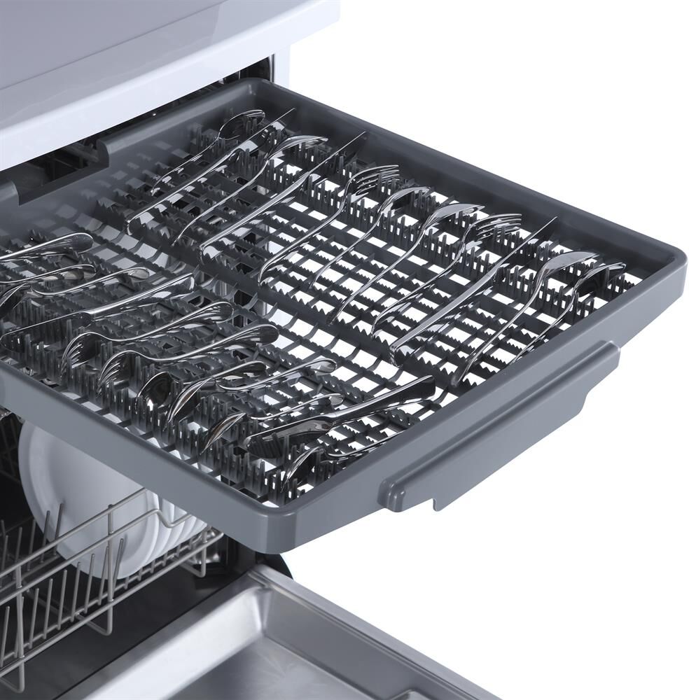Отдельностоящая посудомоечная машина; Габариты: 84,5×59,8×62,8см; Цвет: белый; 14 комплектов посуды; Количество корзин: 2 для посуды,1 для столовых приборов; Класс: А++; LED-дисплей; Таймер отсрочки запуска: 1-24 ч; Количество программ 8: интенсивная, обычная, автоматическая, ополаскивание, ЭКО, стекло, 90 минут, быстрая; Тип сушки: конденсационная; Расход воды за цикл: 10л.; Выбор работы разбрызгивателей; Максимальный уровень шума: 49 дБ