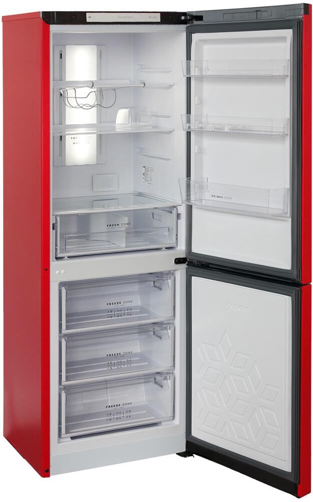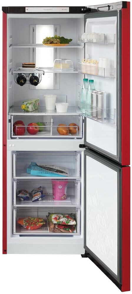 Двухкамерный холодильник с нижней морозильной камерой; Габариты: 175х60х62,5см; Объем: 310/210/100л; Система Full No Frost; Цвет: Красный; LED дисплей на двери; Система охлаждения Multi Air Flow; Регулировка влажности Humidity control; Единая зона для овощей и фруктов Fresh Zone с разделителем; Полка для бутылок, масленка; LED освещение