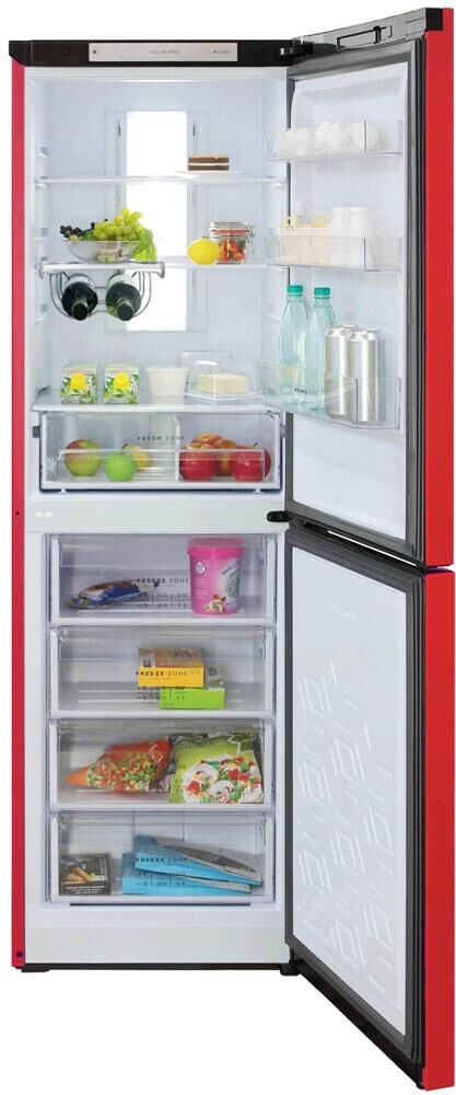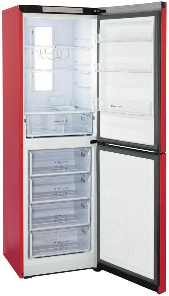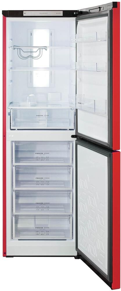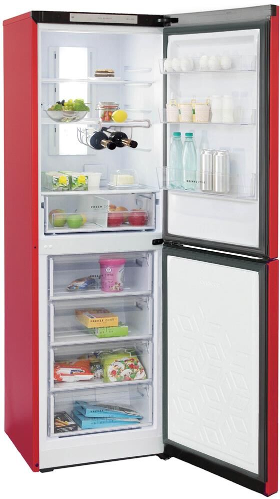 Двухкамерный холодильник с нижней морозильной камерой; Габариты: 192х60х62,5см; Объем: 340/210/130л; Система Full No Frost; Цвет: Красный; LED дисплей на двери; Система охлаждения Multi Air Flow; Регулировка влажности Humidity control; Единая зона для овощей и фруктов Fresh Zone с разделителем; Полка для бутылок, масленка; LED освещение