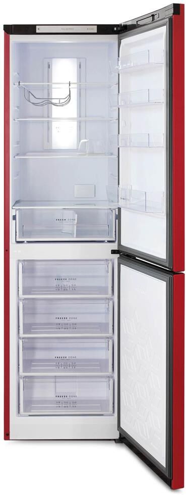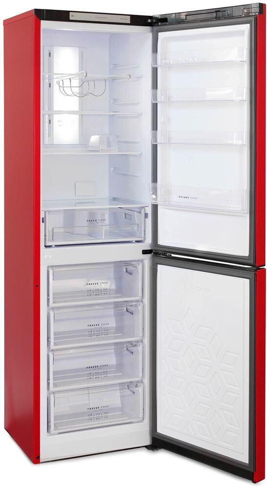 Двухкамерный холодильник с нижней морозильной камерой; Габариты: 207х60х62,5см; Объем: 370/240/130л; Система Full No Frost; Цвет Красный; LED дисплей на двери; Система охлаждения Multi Air Flow; Регулировка влажности Humidity control; Единая зона для овощей и фруктов Fresh Zone с разделителем; Полка для бутылок, масленка; LED освещение