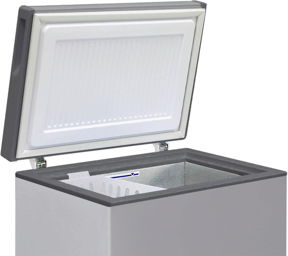 Габариты ВхШхГ: 81×75,5×54см; Объем: 145л; Цвет: Металлик ; Механическое управление; Режим замораживания; 1 корзина в комплекте; Тип двери/крышки: Глухая; Температура хранения не выше: -18 °C; Количество компрессоров: 1; Климатический класс: N; Суточный расход электроэнергии, при температуре окружающего воздуха 24°C, кВтч: 1; Максимальный уровень шума, дБ: 43