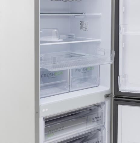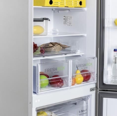 Габариты ВхШхГ: 190х60х62,5см; Объем: 345/245/100л; Цвет: Металлик; Автоматическое оттаивание; Две складные полки; Горизонтальное LED освещение; Полка для бутылок; Регулировка влажности Humidity control; Выдвижной лоток; Механическое управление; Количество компрессоров: 1; Климатический класс: N; Суточный расход электроэнергии, при температуре окружающего воздуха 24°C, кВтч: 0.89; Возможность перевешивания двери; Класс энергоэффективности: A