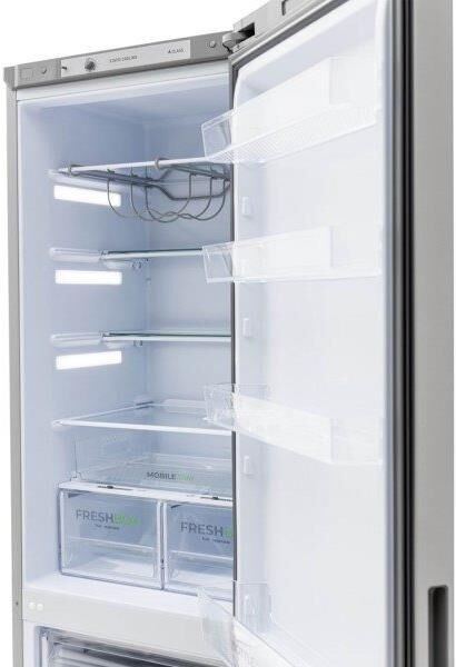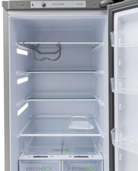 Двухкамерный холодильник с нижней морозильной камерой; Габариты ВхШхГ: 180х60х62,5см; Объем: 330/245/85л; Цвет: Металлик; Автоматическое оттаивание; Две складные полки; Горизонтальное LED освещение; Регулировка влажности Humidity control; Выдвижной лоток; Механическое управление; Класс энергоэффективности: A; Суточный расход электроэнергии, при температуре окружающего воздуха 24°C, кВтч: 0.87; Климатический класс: N; Количество ящиков в морозильном отделении: 2; Размораживание морозильной камеры: ручное; Автономное сохранение холода, ч: 12; Мощность замораживания, кг/сутки: 5; Минимальная температура в морозильной камере, °C: -18