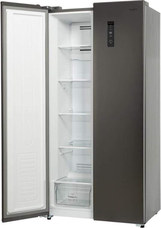 Холодильник Side-by-side; Габариты ВхШхГ: 171,2×83,6×61см; Объем: 400/232/168л; Цвет: темная нержавеющая сталь; Система Full No Frost; LED-освещение; Класс энергоэффективности: А+; Система распределения воздушных потоков MultiFlow;