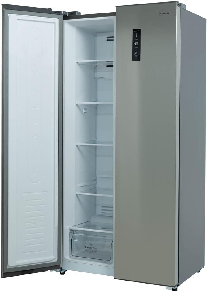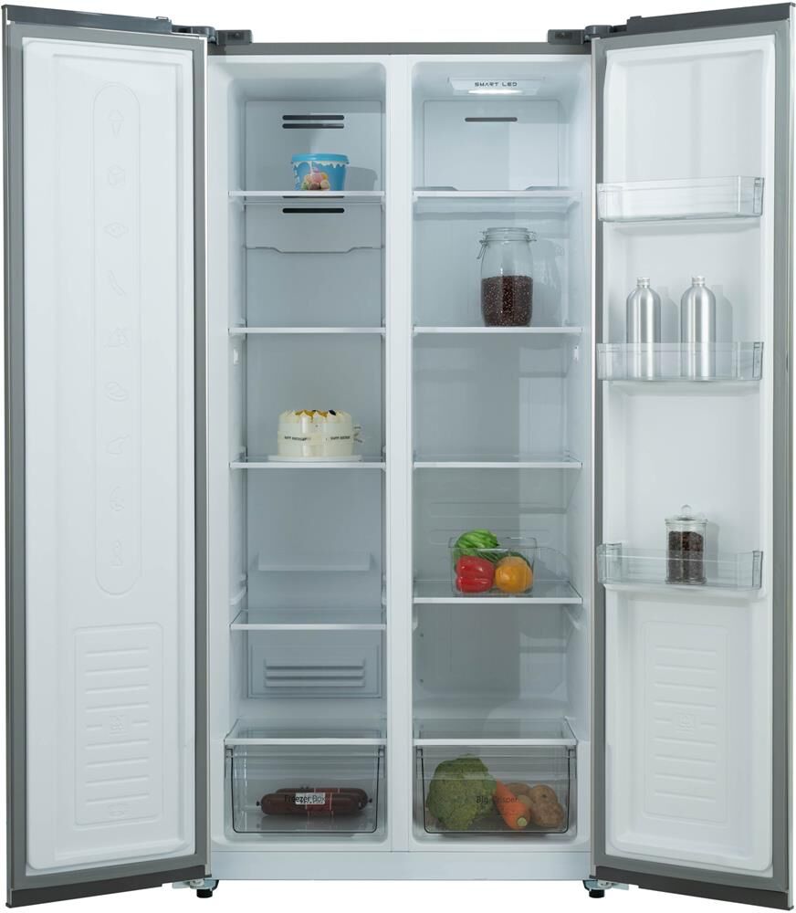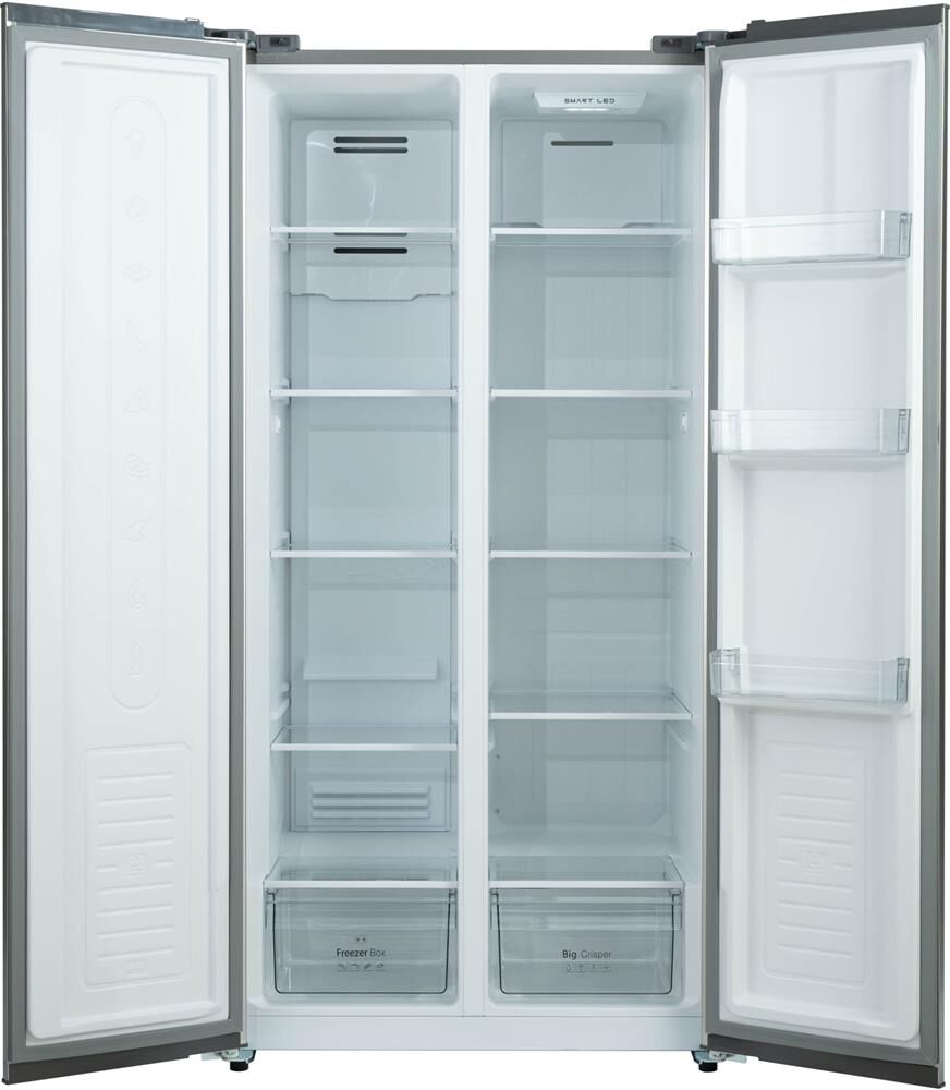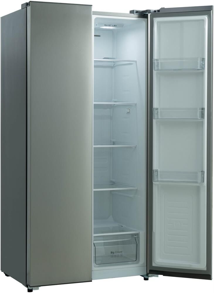 Холодильник Side-by-side цвета нержавеющая сталь • система Full No Frost • LED-освещение • класс энергоэффективности А+ • система распределения воздушных потоков MultiFlow • габариты 171,2×83,6×61см • объем 400/232/168л