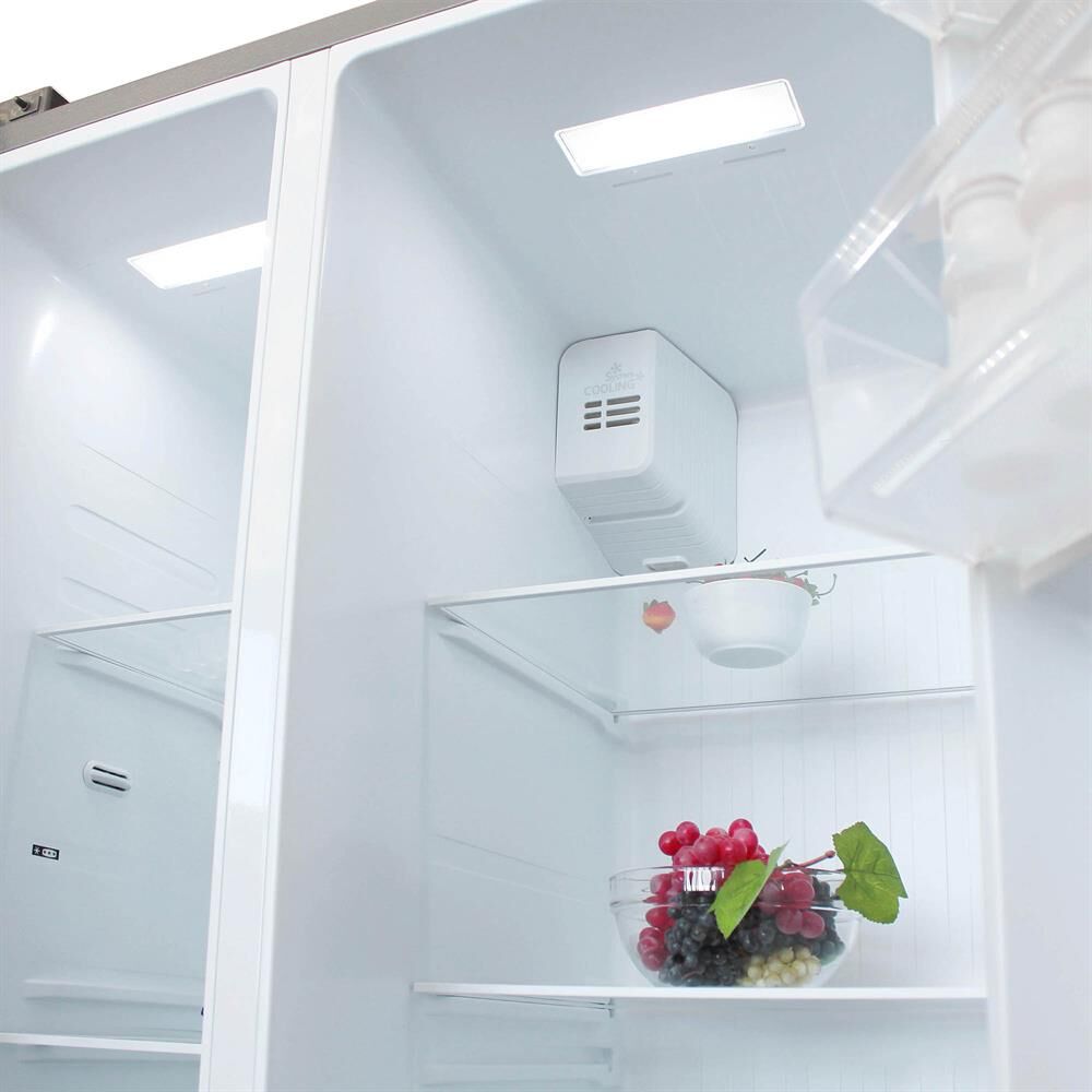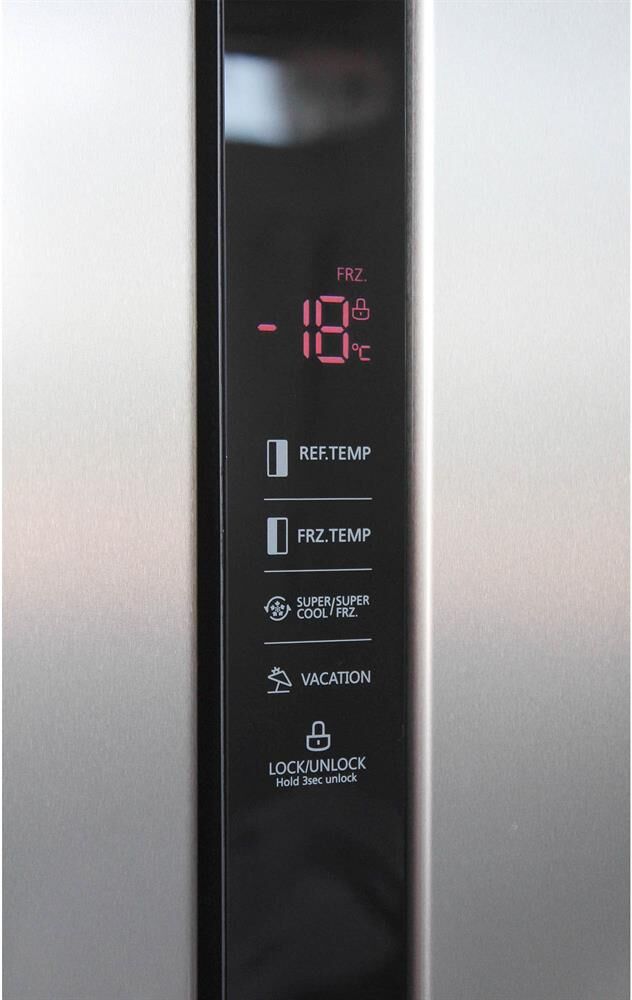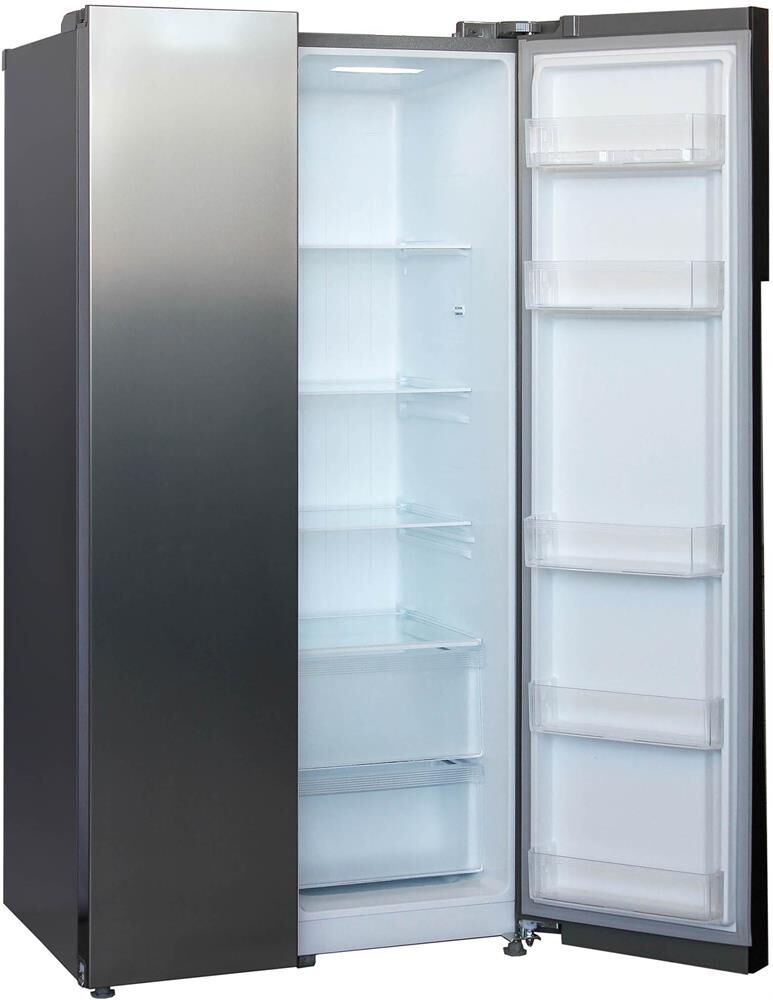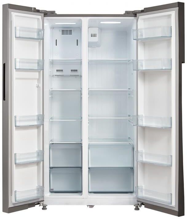 Холодильник Side-by-Side с системой Full No Frost. Цветовое исполнение нержавеющая сталь. Номинальный полезный объем, дм3 510. Номинальный полезный объем холодильной камеры, дм3 335. Номинальный полезный морозильной камеры, дм3 175. Габаритные размеры (без/с упаковкой), мм (ВхШхГ) 1788х895х690/ 1868х955х755. Тип управления LED-дисплей. Количество компрессоров 1. Корректированный уровень звуковой мощности (не более), дБа 43. Класс энергетической эффективности A+. Климатический класс, температура окружающего воздуха ST,SN,N +16…+38°C. Освещение LED. Система суперохлаждение. Система суперзаморозка. Режим отпуск. Защита от детей.