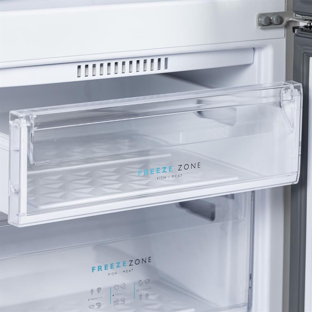 Двухкамерный холодильник с нижней морозильной камерой • цвет Матовый графит • LED освещение • автоматическое оттаивание • механическое управление • габариты 145x58x62см • объем 240/180/60л