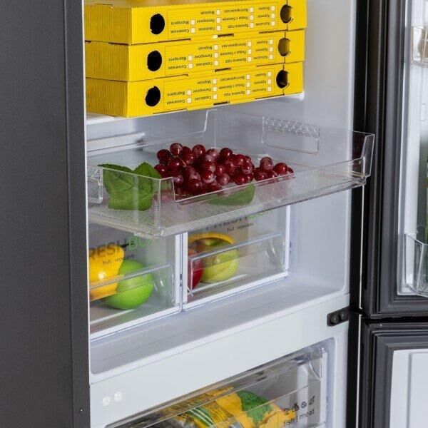 Двухкамерный холодильник с нижней морозильной камерой • габариты 175х60х62,5см • объем 310/210/100л • цвет Матовый графит • автоматическое оттаивание • складная полка • горизонтальное LED освещение • регулировка влажности Humidity control • выдвижной лоток • механическое управление • Класс энергоэффективности A * Климатический класс N * Возможность перевешивания двери * Количество ящиков в морозильном отделении 3 * Размораживание морозильной камеры ручное * Автономное сохранение холода, ч 17 * Мощность замораживания, кг/сутки 5 * Минимальная температура в морозильной камере, °C -18 *