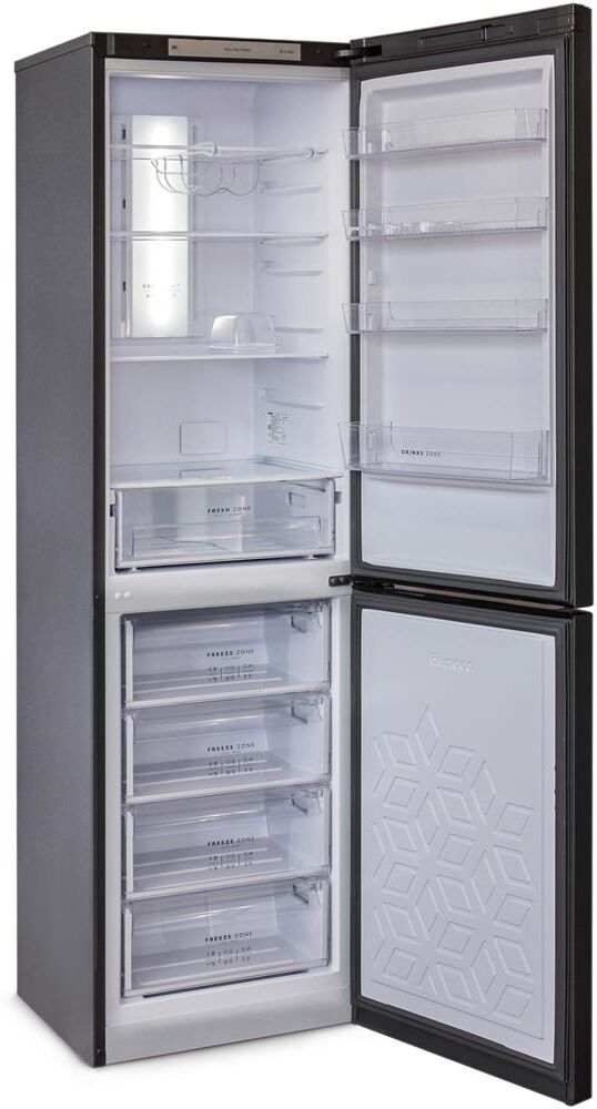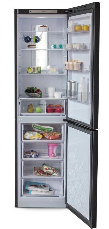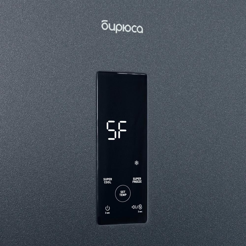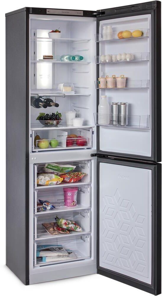 Двухкамерный холодильник с нижней морозильной камерой с системой Full No Frost с дисплеем на двери • цвет Матовый графит • LED дисплей на двери • система охлаждения Multi Air Flow • регулировка влажности Humidity control • единая зона для овощей и фруктов Fresh Zone с разделителем • полка для бутылок, масленка • LED освещение • электронное управление • габариты 207х60х62,5см • объем 370/240/130л