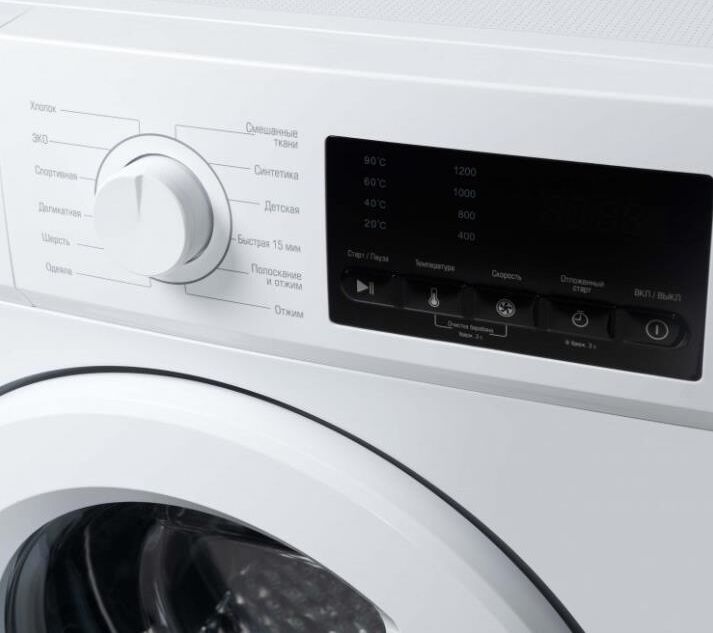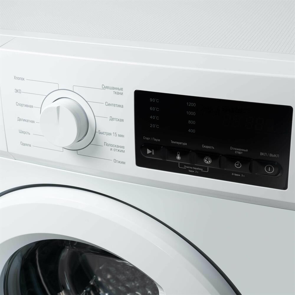 • габариты 85×59,5х48см • цвет Белый • загрузка 7 кг • 1200 об/мин • 12 программ • сенсорный LED дисплей * Контроль дисбаланса * Защита от детей * Программы Хлопок, деликатная, шерсть, смешанные ткани, синтетика, быстрая, отжим, полоскание и отжим * Специальные программы ЭКО, спортивная, одеяла, детская *