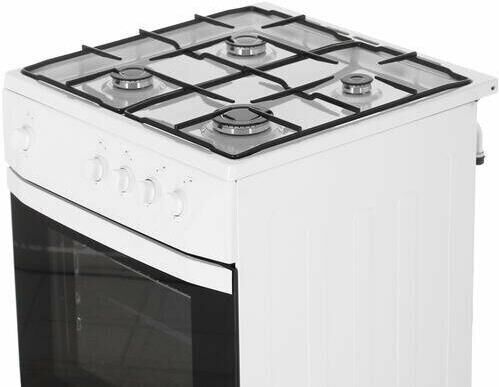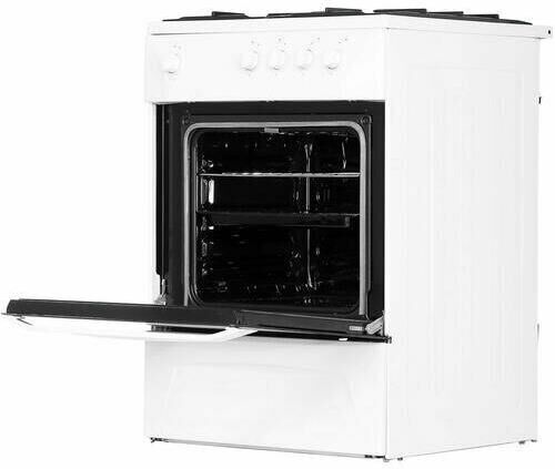 (ШхГхВ) 60х60х85см.Цвет белый.Варочная панель газовая.Количество конфорок 4.Рабочая поверхность эмаль.Духовка газовая.Обьем духовки 50л.Дверца откидная,газ-контроль духовки.Ящик для посуды.
