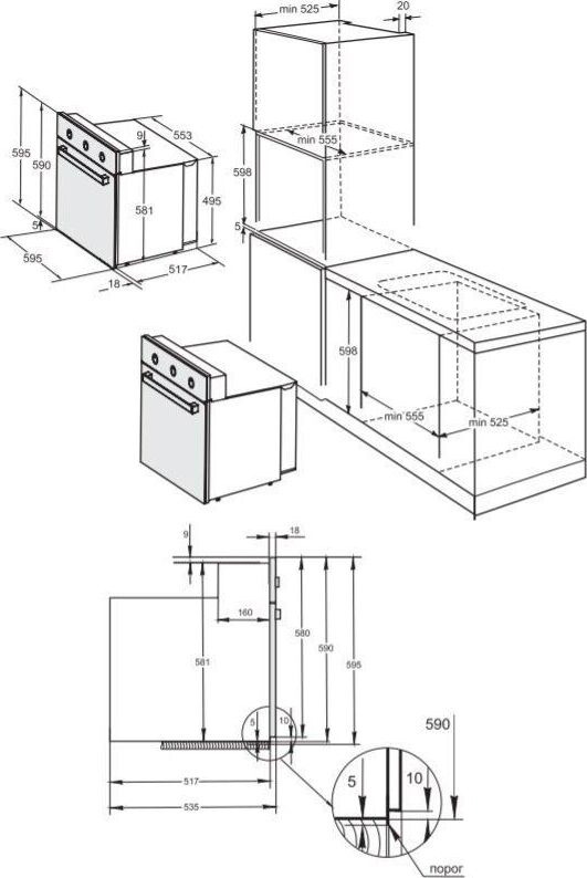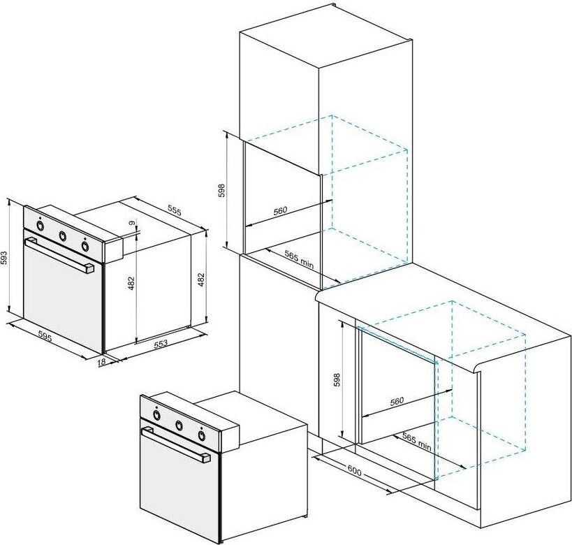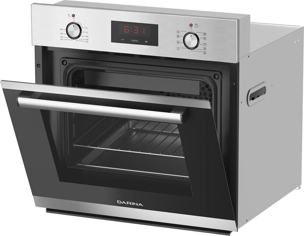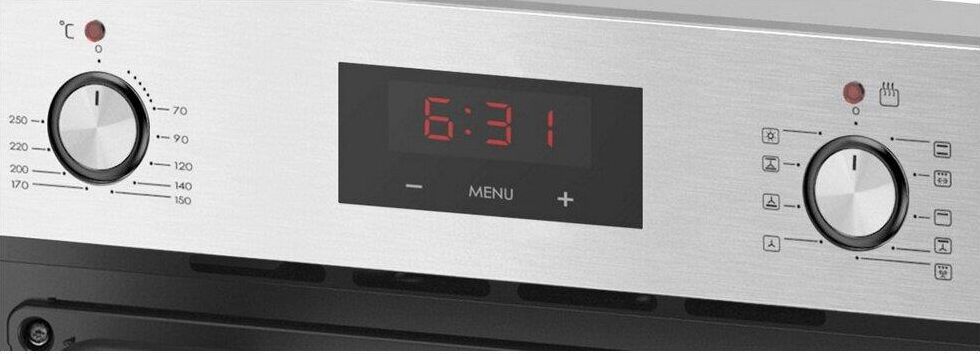 (ШхГхВ) 59.5 х 52 х 59.5 см.Цвет серебристый.Тип управления независимое. Переключатели поворотные.Утапливаемые переключатели.Мощность подключения 3500 Вт.Класс энергоэффективности A.Объем духовки 60 л.Конвекция Гриль.Тип гриля электрический.Дисплей.Часы.Таймер.Количество программ духовки 9.Вентилятор охлаждения.Освещение духовки.Защитное отключение.