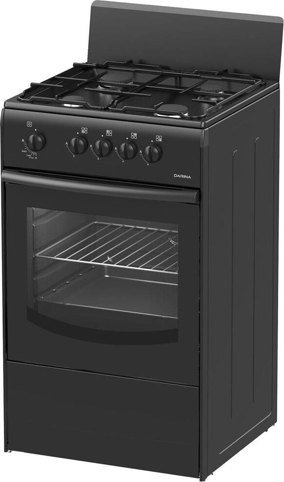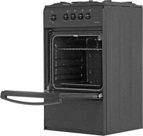 (ВхШхГ)85х50х50см.Плита оснащена 4 газовыми конфорками и газовой духовкой. Полезный объем духовки составляет 50 литров.Вид управления поворотный механизм.Внутреннее покрытие из эмали облегчает чистку стенок духовки. Двойное стекло дверцы духовки удерживает тепло внутри в течение всего процесса приготовления пищи. Защитный щиток предотвращает попадание брызг на стену.