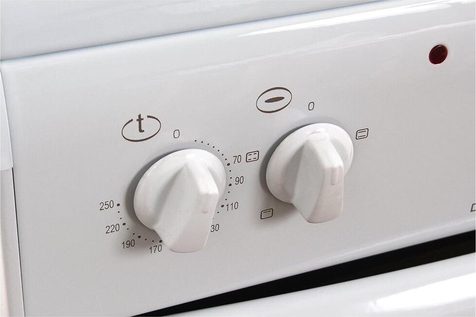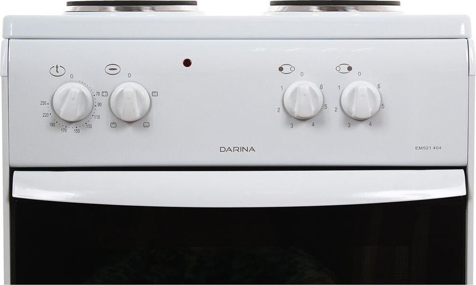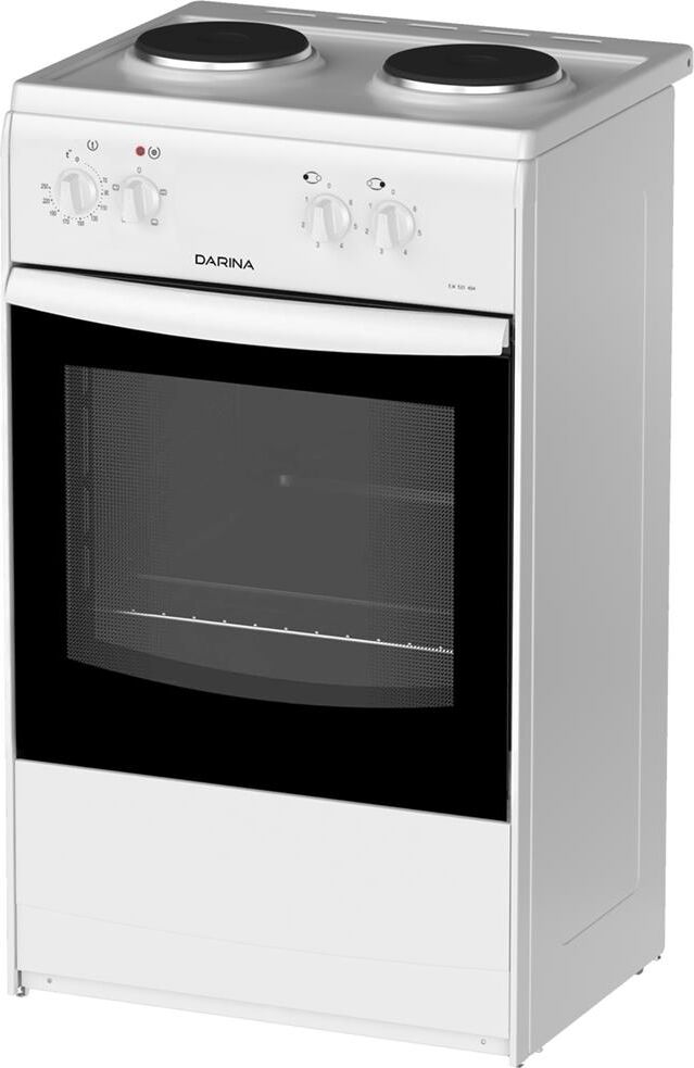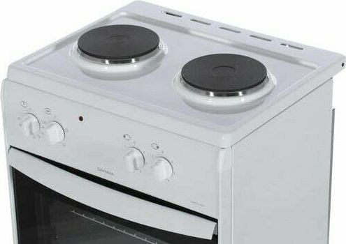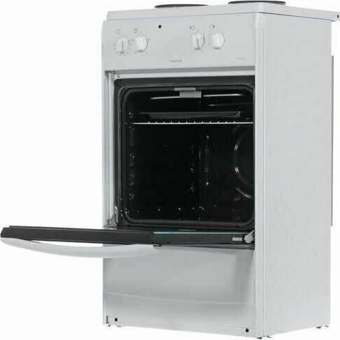 (ШхГхВ) 50x40x85см.Цвет белый.Электрика.Управление механическое, переключатели поворотные.Объем духовки 45 л. Дверца откидная. Очистка традиционная, подсветка духовки, эмаль, кол-во конфорок 2. Ящик для посуды.