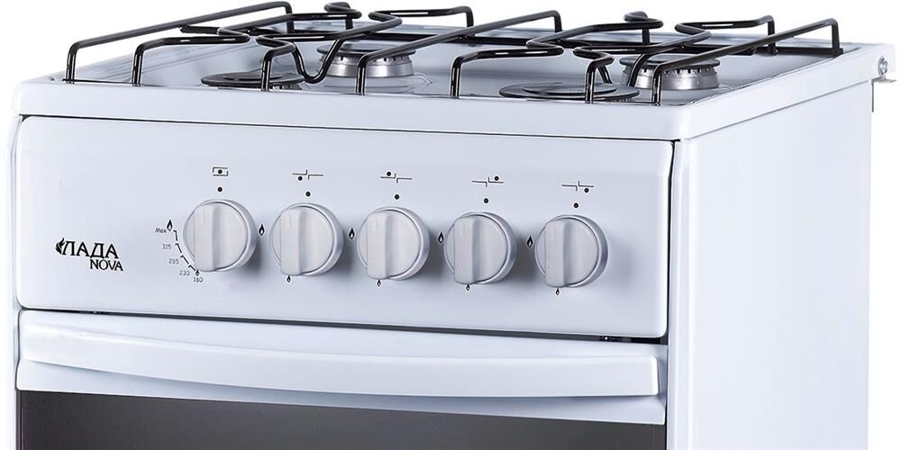 Габаритные размеры, см 50 х 60 х 85 * Цвет белый * Материал варочной поверхности эмаль * Объем духовки 50л * Двойное стекло дверцы духовки * Материал духового шкафа эмаль * 4-х горелочная, газ-контроль горелки духовки, проволочная решетка стола, хоз. отсек, решетка духовки *