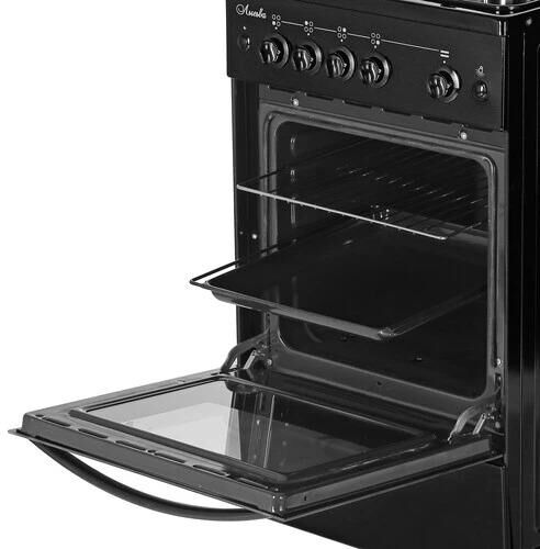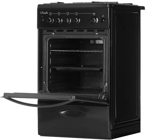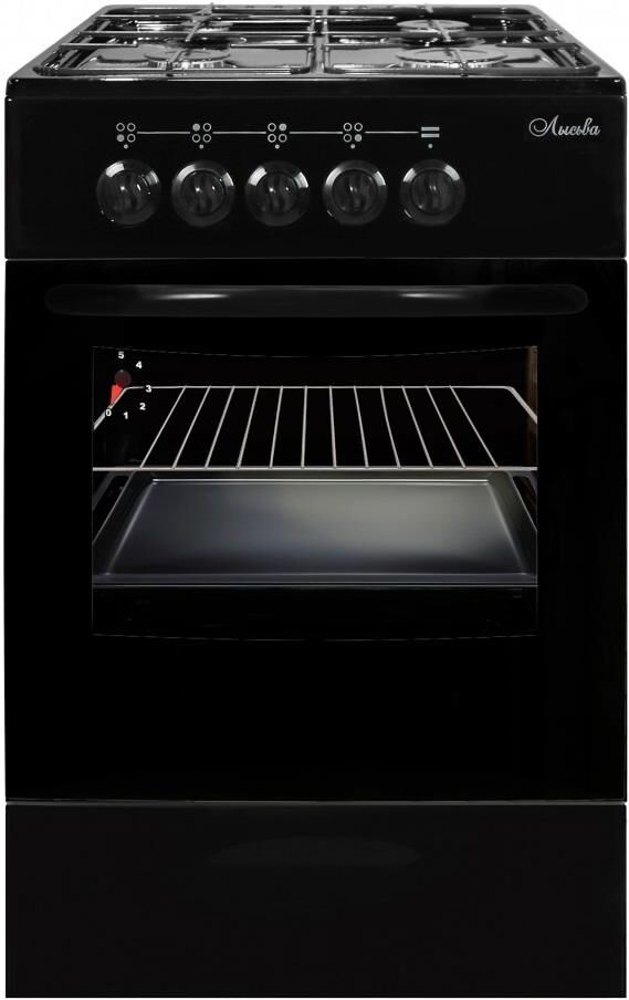 (ШхГхВ) 500х600х850 мм.Цвет черный.Масса нетто: 34 кг Газ: природный или сжиженный Количество горелок: 4 Мощность передней левой горелки: 1.5 кВт Мощность передней правой горелки: 2.3 кВт Мощность задней левой горелки: 1 кВт Мощность задней правой горелки: 1.5 кВт Тип духовки: газовая Мощность газовой горелки пода: 2.3 кВт Объём жарочного шкафа — 57 л Дверца съёмная с двойным стеклом Функция «газ-контроль» жарочного шкафа Подставка для посуды малого диаметра Дверца съёмная с двойным стеклом Металлический фасад ящика