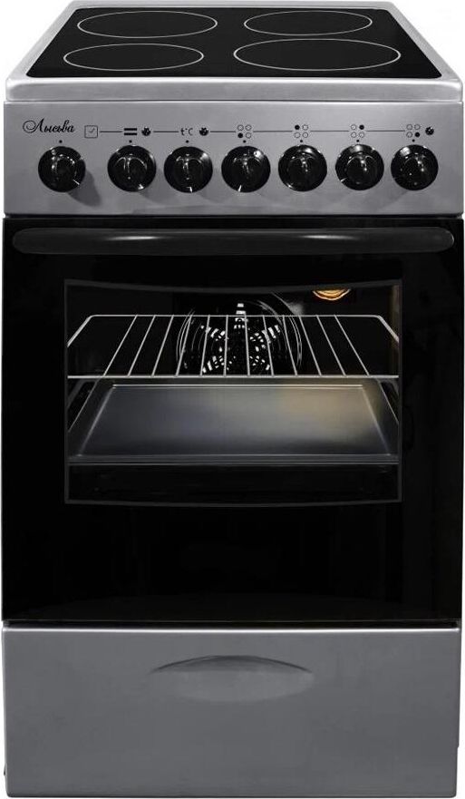 (ШхГхВ)50х60х84см. Цвет жемчужно-светло-серый.Тип духовки электрическая. Объём духовки, л 57.Диапазон температуры духового шкафа, °С 50-300.Таймер. Гриль.Конвективный нагрев .Подсветка.Дверца с двойным стеклом.Панорамное стекло духовки.Противень.Решетка.Выдвижной ящик.Материал варочной поверхности стеклокерамика.Количество конфорок 4.Индикатор остаточного тепла. Вес 33кг.