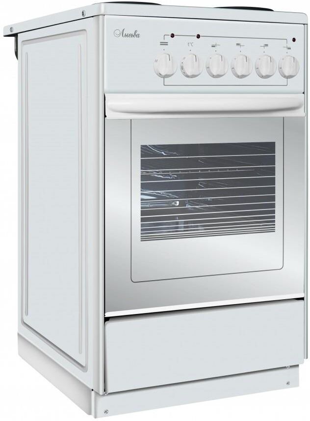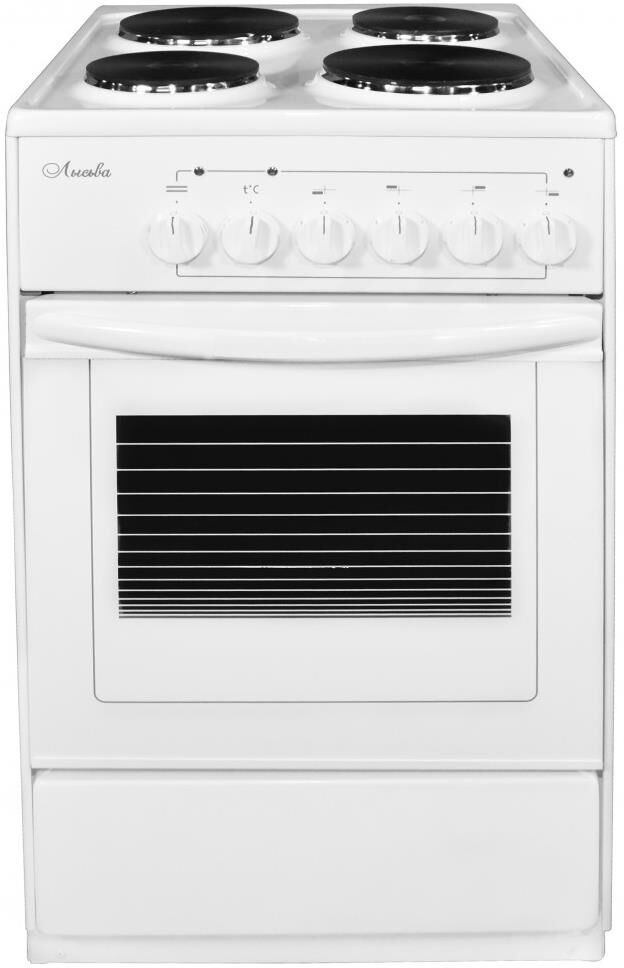 (ШхГхВ) 500х600х840±5 мм.Цвет белый.Установленная мощность: 7 кВт Масса нетто: 34 кг.Количество конфорок: 4.Мощность передней левой конфорки: 1 кВт (145 мм).Мощность передней правой конфорки: 1.5 кВт (180 мм).Мощность задней левой конфорки: 1.5 кВт (180 мм).Мощность задней правой конфорки: 1 кВт (145 мм).Тип духовки: электрическая.Мощность вехнего ТЭНа: 0.8 кВт.Мощность нижнего ТЭНа: 1.2 кВт.Температура жарочного шкафа регулируется от 50 до 300 °С.Объём жарочного шкафа — 57 л.Дверца съёмная с двойным стеклом.