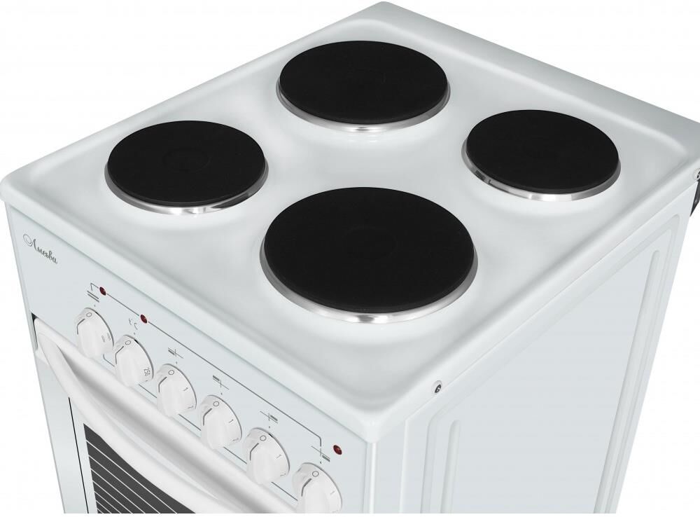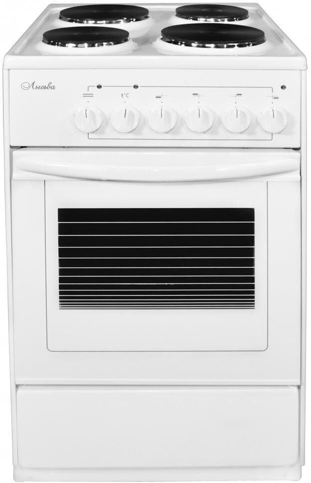 (ШхГхВ) 500х600х840±5 мм.Цвет белый.Установленная мощность: 7 кВт Масса нетто: 37 кг.Количество конфорок: 4 Мощность передней левой конфорки: 1 кВт (145 мм) Мощность передней правой конфорки: 1.5 кВт (180 мм) Мощность задней левой конфорки: 1.5 кВт (180 мм) Мощность задней правой конфорки: 1 кВт (145 мм) При включении жарочного шкафа блокируется правая ближняя конфорка.Тип духовки: электрическая Мощность вехнего ТЭНа: 0.8 кВт Мощность нижнего ТЭНа: 1.2 кВт Температура жарочного шкафа регулируется от 50 до 300 °С Объём жарочного шкафа — 57 л Подсветка духовки Дверца съёмная с двойным стеклом Выдвижной ящик для хранения кухонных принадлежностей