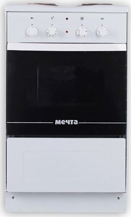 Габаритные размеры плиты (ШхГхВ), мм? 500х430х850 * Масса нетто / брутто, кг, не более 25,2 / 28,0 * Исполнение белая эмаль * Тип электроконфорок ТЭН * Количество электроконфорок, шт. 2 * Поддержание установленной температуры внутри электрошкафа жарочного, °С 50 … 300 * духовкой 33 л * ящик для посуды * Впишется в небольшую кухню или дачный домик *