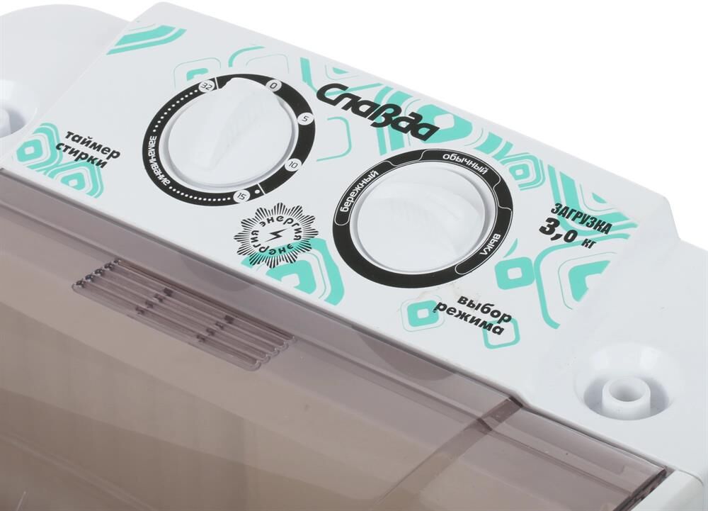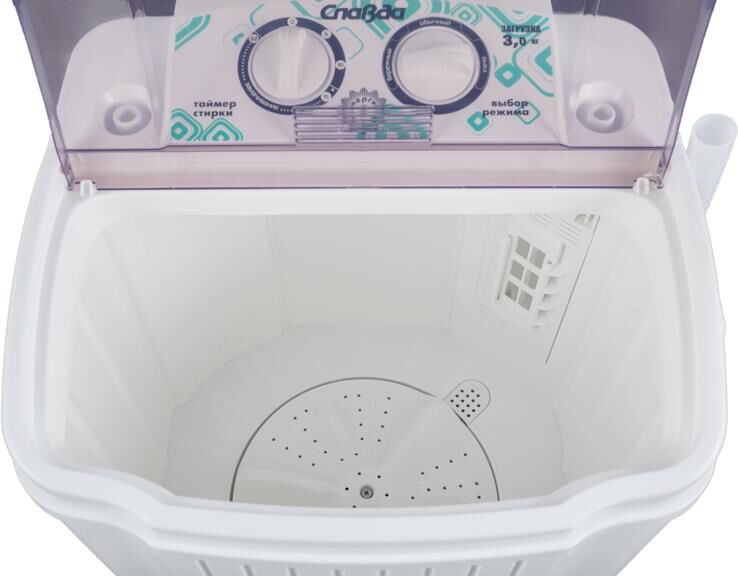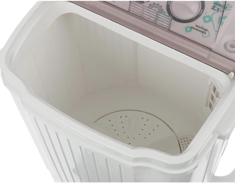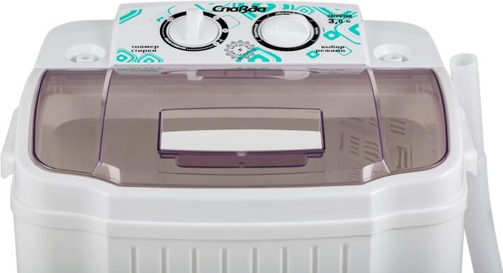 (ШхГхВ)41х33х63,5см.Цвет белый с полупрозрачными окошками.Загрузка сухого белья в бак стирки, до (кг): 3.Максимальная потребляемая мощность (Вт): 200.Тип активаторный.Загрузка вертикальная.Тип активаторный.Загрузка вертикальная. Реверс, снижающий эффект закручивания белья.Двигатель повышенной мощности. Материал корпуса полипропилен.Фильтр для сбора ворса и пуха .