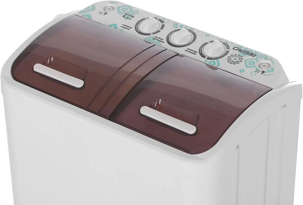 (ВхШхГ) 69,5х36х60см. Цвет белый.Загрузка сухого белья в бак стирки, до (кг): 4 Загрузка белья в бак отжима, до (кг): 3,5.Максимальная потребляемая мощность (Вт): 360.Сливной насос.Реверс.Вес, кг: 12,7.Количество программ стирки 2. Таймер стирки (мин)15.Таймер отжима (мин) 5.Активатор нового поколения. Двигатель повышенной мощности.Материал корпуса полипропилен.Класс безопасности IP54.Безопасная система отжима.Скорость отжима (об/мин) 1350. Режим работы: Обычная стирка, Бережная стирка, Слив.