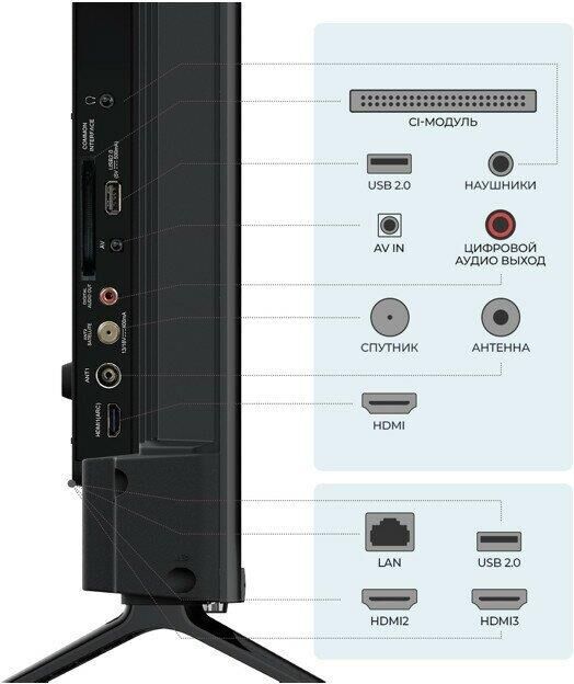 Диагональ 50". Встроенный Bluetooth Да. SmartTV Да. Формат экрана 16:9. Интерфейсы USB, HDMI, AV. Количество тюнеров 2. Контрастность 5000:1. VESA 200х200. Операционная система Android 11. Потребляемая мощность 130 Вт. Разрешение 3840×2160. Технология HDR Да. Напряжение питания 220-240 В / 50-60 Гц. Максимальная скорость передачи данных 867,7 мб/с. Версия Bluetooth 4.2. Диапазон Wi-Fi 2.4 ГГц, 5 ГГц. Угол обзора 170 ⁰. Время отклика матрицы, мс 5. Частота обновления, Гц 60. Яркость, кд/м² 250. Кол-во отображаемых цветов 1.07 млрд. Dolby/Dolby+ Да. Типы принимаемых ТВ сигналов DVB-T/T2/C/S/S2. CI (Common Interface) PCMCIA CI+ 1.3. HDMI, кол-во входов -3. USB, кол-во входов -2. Потребление электроэнергии в режиме ожидания 0.5. Голосовой помощник Маруся.