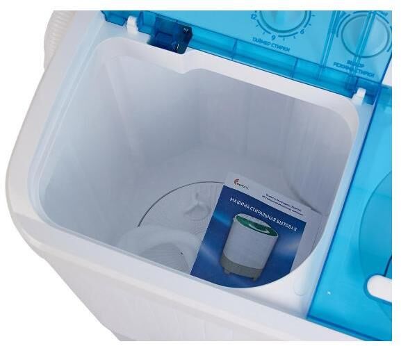 Полуавтоматическая стиральная машина активаторного типа с функцией отжима белья. Управление механическое. Режимы стирки: 1. нормальный; 2. деликатный. Функция реверс. Максимальная загрузка белья в бак стирки до 4 кг. Максимальная загрузка белья в ценрифугу до 3,5 кг. Максимальное количество оборотов при отжиме 1320 об./мин. Таймер: стирка 15 мин., отжим 5 мин. Сливной насос. Вес изделия 13 кг Размер изделия 59,5х68,5х36см.
