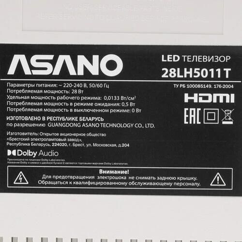 ASANO 28LH5011T HD SMART TV Салют белый
